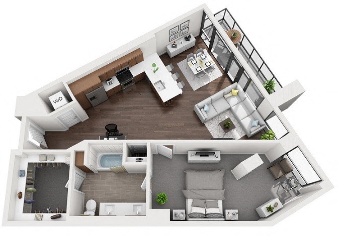 1000 Speer by Windsor offers a variety of studio, one-, two-, and three-bedroom luxury apartments designed to meet your lifestyle needs. Personalize your home with a choice of three elegant finishes—espresso, walnut, or white—creating a space that reflects your style. Oversized windows fill each residence with natural light, while soaring 10- to 12-foot ceilings enhance the sense of spaciousness and sophistication.