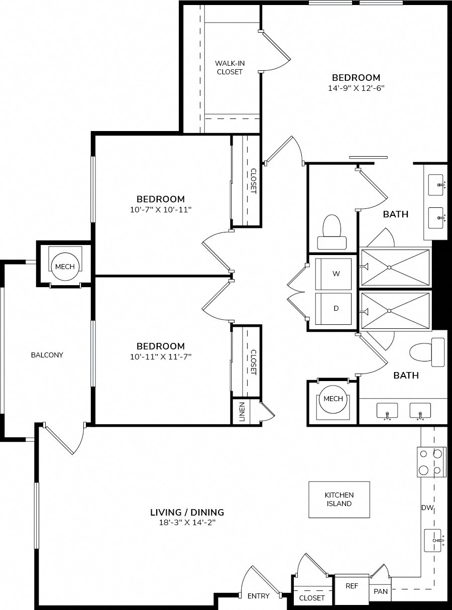 Every apartment features cutting-edge technology and high-end finishes, including keyless fob entry, USB charging stations, stainless steel appliances, and Cat6 wiring with high-speed gigabit internet. Expansive windows with solar shades, private patios or balconies, and spacious walk-in closets further enhance the comfort and elegance of your home.