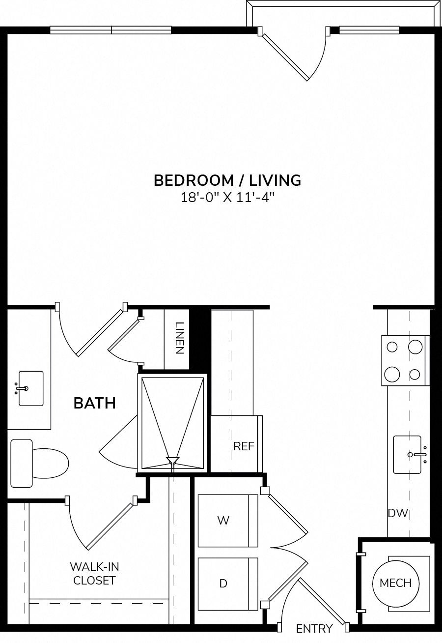 Eleven by Windsor offers a variety of studio, one-, and two-bedroom apartments designed for modern living. Each residence features polished concrete or rich hardwood flooring, contemporary espresso or white cabinetry, and gourmet kitchens with granite countertops and stainless steel appliances. Expansive windows fill the space with natural light, while full-size washers and dryers add convenience to your daily routine.