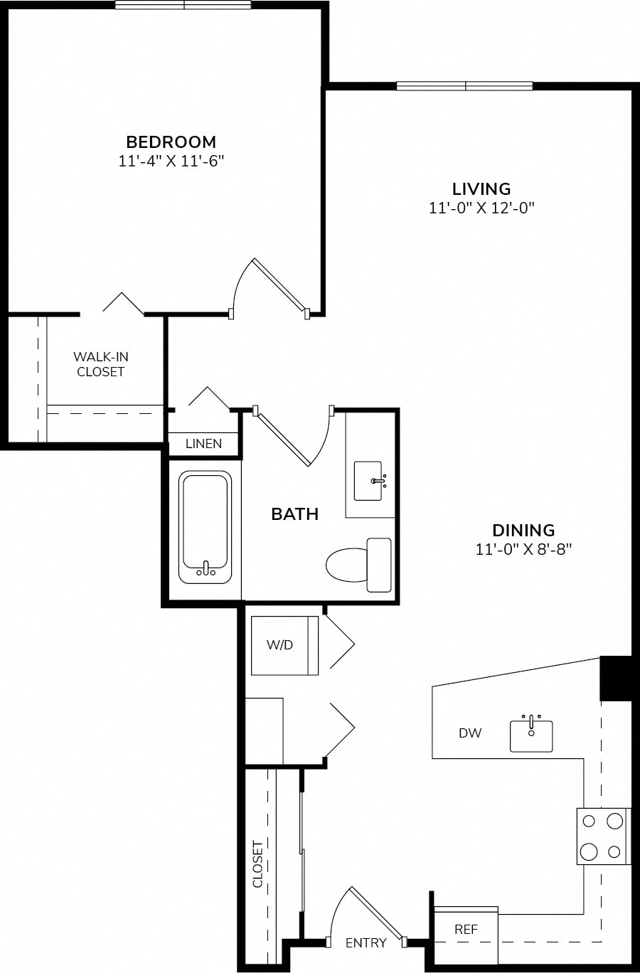 Platform 14 by Windsor offers a variety of studio, one-, and two-bedroom apartment homes, featuring spacious layouts and modern finishes. Each residence is designed for contemporary living, with gourmet kitchens equipped with stainless steel appliances, quartz countertops, and custom cabinetry. Full-size washers and dryers add everyday convenience, while expansive windows fill each home with natural light.