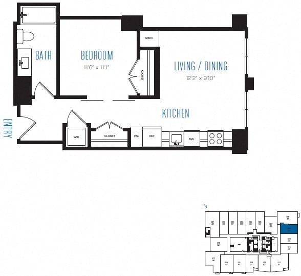 At Stratus, high-rise luxury living is fully customizable. Choose from five unique color schemes and spacious studio, one-, and two-bedroom floorplans featuring condo-quality finishes. Each residence is designed with granite entry thresholds, seamless quartz countertops and backsplashes, and kitchen islands for both style and function.