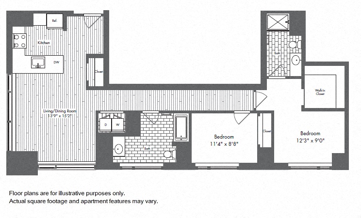 Waterside Place by Windsor offers a selection of spacious one-, two-, and three-bedroom residences, thoughtfully designed with modern finishes and open layouts. Each home features granite countertops, stainless steel appliances, full-size washers and dryers, and charcoal wide plank wood flooring. Expansive 10-foot windows provide stunning views of Boston’s harbor and skyline, while select homes boast walk-in closets, double sinks in master baths, kitchen islands, breakfast bars, built-in office space, and private patios.