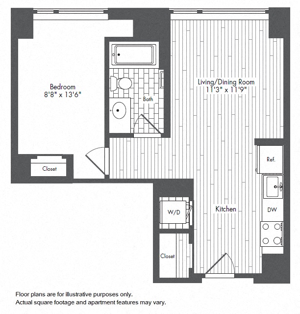 Waterside Place by Windsor offers a selection of spacious one-, two-, and three-bedroom residences, thoughtfully designed with modern finishes and open layouts. Each home features granite countertops, stainless steel appliances, full-size washers and dryers, and charcoal wide plank wood flooring. Expansive 10-foot windows provide stunning views of Boston’s harbor and skyline, while select homes boast walk-in closets, double sinks in master baths, kitchen islands, breakfast bars, built-in office space, and private patios.