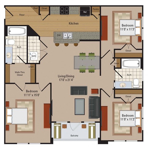 Windsor Leesburg offers an impressive collection of layouts designed to fit your lifestyle. Ranging from 589 to 1,431 square feet, our studio, one-, two-, and three-bedroom apartments provide spacious and sophisticated interiors with high ceilings and abundant natural light.