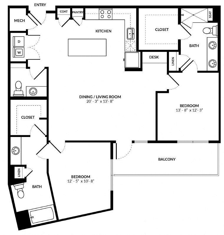 Each apartment is designed to cater to your lifestyle, whether you’re entertaining guests in the bright, airy living space or unwinding in your spa-inspired bathroom. Select floor plans offer private balconies, soaking tubs, and built-in shelving for an added touch of luxury. With full-size washers and dryers in every home, convenience is always within reach.