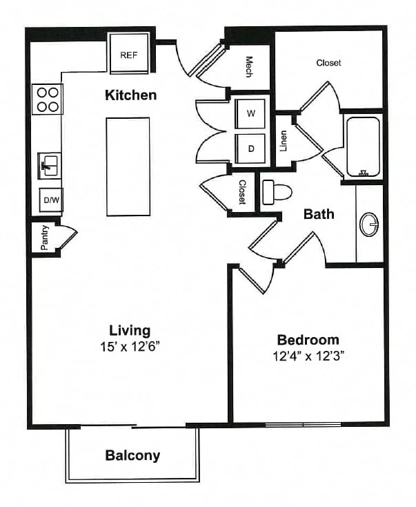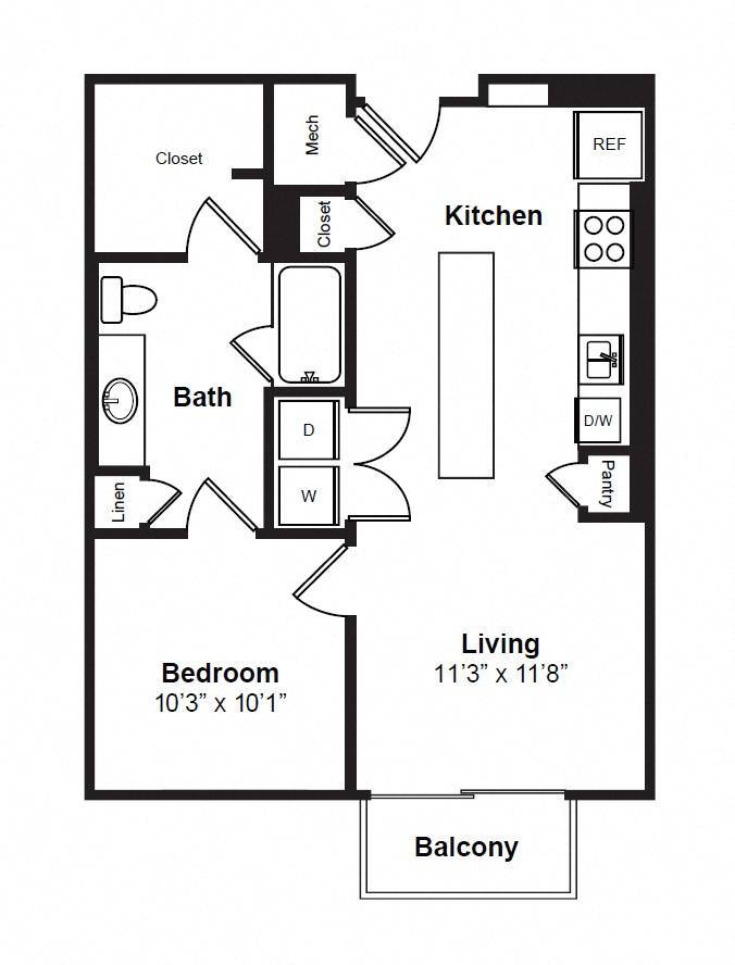 Each apartment is designed to cater to your lifestyle, whether you’re entertaining guests in the bright, airy living space or unwinding in your spa-inspired bathroom. Select floor plans offer private balconies, soaking tubs, and built-in shelving for an added touch of luxury. With full-size washers and dryers in every home, convenience is always within reach.