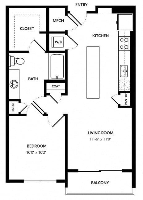 Each apartment is designed to cater to your lifestyle, whether you’re entertaining guests in the bright, airy living space or unwinding in your spa-inspired bathroom. Select floor plans offer private balconies, soaking tubs, and built-in shelving for an added touch of luxury. With full-size washers and dryers in every home, convenience is always within reach.