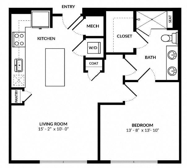 Each apartment is designed to cater to your lifestyle, whether you’re entertaining guests in the bright, airy living space or unwinding in your spa-inspired bathroom. Select floor plans offer private balconies, soaking tubs, and built-in shelving for an added touch of luxury. With full-size washers and dryers in every home, convenience is always within reach.