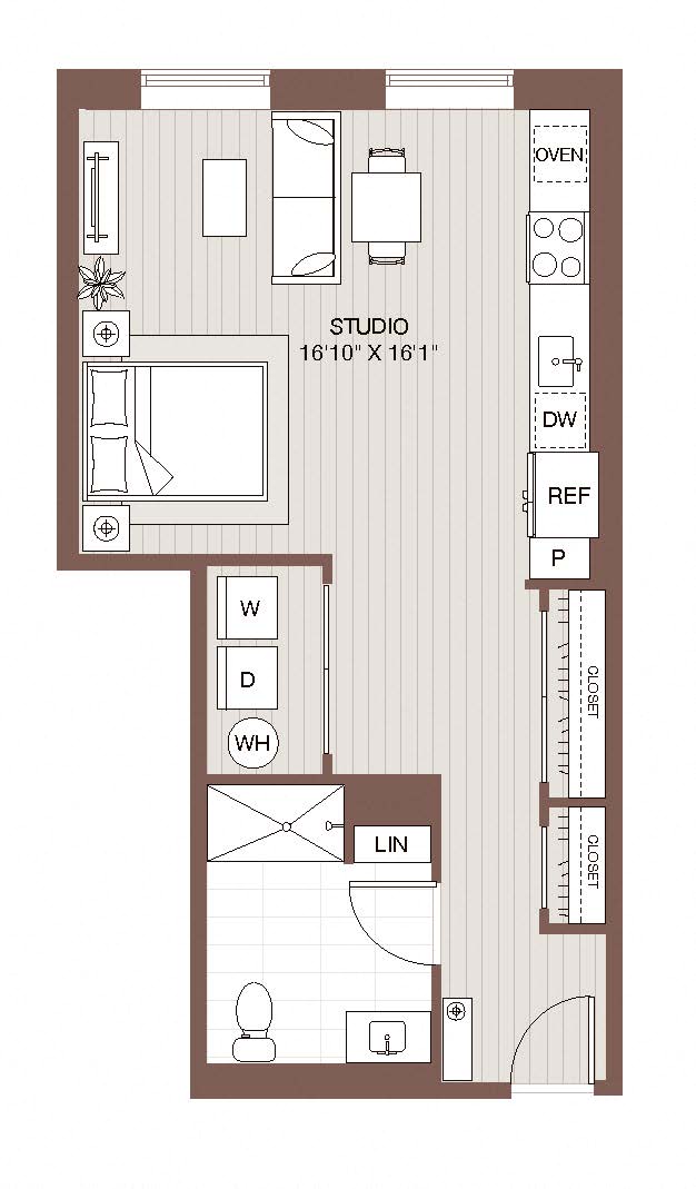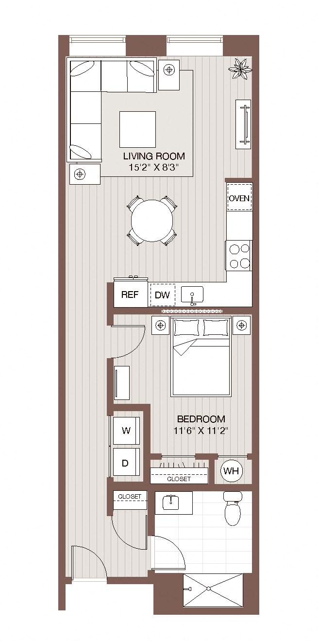 Find a floor plan that fits your lifestyle at Windsor Radio Factory. Whether you choose a cozy studio or an expansive three-bedroom apartment, every home is designed with elegance and comfort in mind. Soaring ceilings, exposed brick walls, and oversized windows create a stunning ambiance, while gourmet kitchens with quartz or granite countertops and sleek appliances make every meal a delight. Select layouts include private balconies, spacious walk-in closets, and wood beam ceilings, ensuring your home feels as unique as you are.
